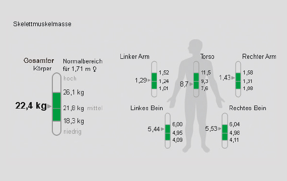 Eine 33-jährige Frau lief vor zwei Jahren ihren letzten Marathon. Zu dieser Zeit ging sie fünf bis sechsmal die Woche laufen, kombiniert mit einem funktionellen Training im Fitnessstudio. In den letzten zwei Jahren war das Studium so intensiv, dass das Laufen zurück gestellt werden musste. Nun, nach dem Abschluss, möchte sie ihren alten Trainingsstand wiedererlangen und geht zweimal die Woche laufen und dazu einmal die Woche zum funktionellen Training. Durch die Analyse der Körperzusammensetzung möchte sie erfahren, inwieweit sich das Training schon ausbezahlt hat.
