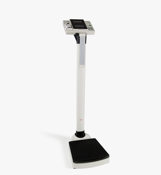 Una vez efectuados la medición y el pesaje, ambos valores aparecen en dos indicadores LCD integrados en la pantalla. A partir de los valores registrados, seca 763 calcula automáticamente el índice de masa corporal (BMI) del paciente con sólo pulsar una tecla; el BMI proporciona información sobre el estado de nutrición general de una persona sobre la base del estándar homologado de la Organización Mundial de la Salud. Esta estación de pesaje y medición de la talla, con una capacidad de 250 kg, una baja plataforma y una construcción extraordinariamente sólida, también es adecuada para personas obesas.