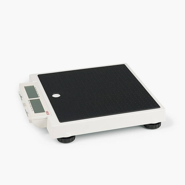 De bajo peso, construcción muy sólida y diseño fácil de usar, con pilas de larga duración y una precisión que diferentes niveles de humedad no afectan. Cuando se realicen exámenes en serie, no hay necesidad de agacharse una y otra vez; la báscula se enciende con el simple contacto de la punta del pie sobre el botón de encendido y apagado. La doble pantalla ofrece una fácil y simultánea lectura para el paciente y el personal médico, desde diferentes posiciones. Y el botón 2 en 1 permite el pesaje de un niño en brazos de su progenitor.