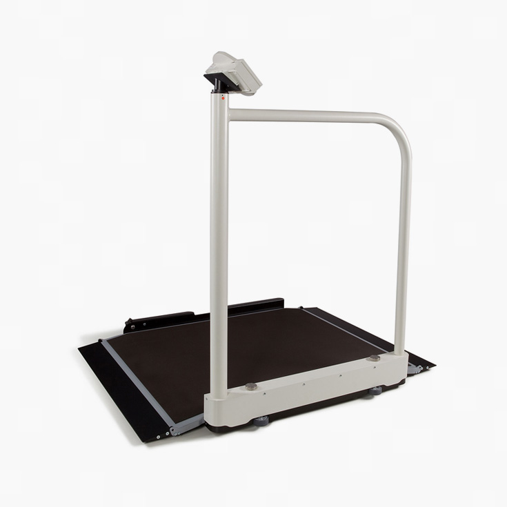 Báscula para sillas de ruedas validada por EMR con pasamanos y ruedas de transporte
