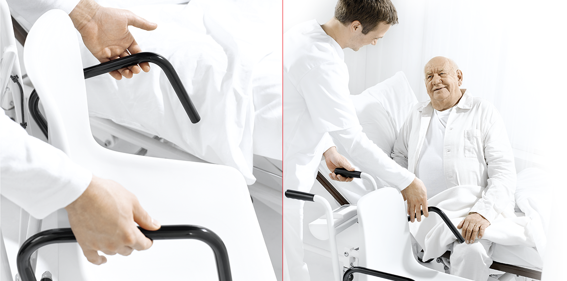 Los apoyapies de generosas dimensiones son completamente retráctiles. Para que los pacientes puedan tomar asiento fácil y seguramente.