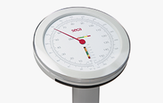Quand une personne monte sur la plateforme, un «disque BMI» subdivisé en secteurs de différentes couleurs tourne sous le grand cadran rond très précis de cette balance. Ces secteurs sont visibles dans une petite fenêtre placée à côté d‘une échelle des tailles. Cette échelle permet de déterminer l‘intervalle BMI correspondant au résultat de la pesée, les différentes couleurs correspondant à une insuffisance pondérale, un poids normal, un surpoids ou une adiposité (surpoids pathologique). La surface plane de la plateforme et des roulettes de transport bien pratiques sont d‘autres avantages de la balance seca 755.
