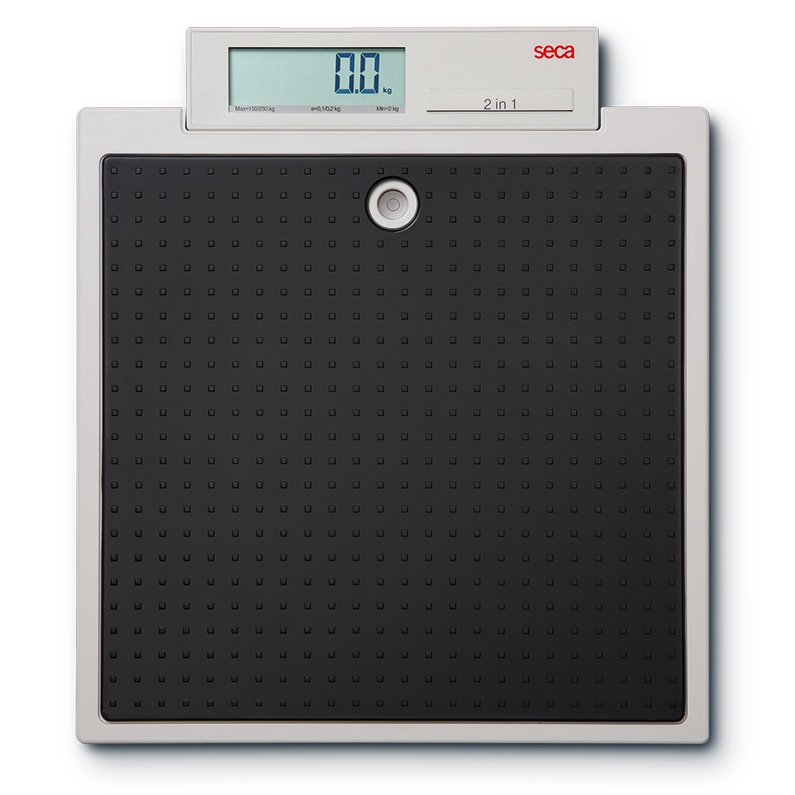 Тому подтверждение весы seca 876, весящие всего лишь 4,2 кг, и очень компактные. Кроме того, они очень прочные и подходят для людей весом до 200 килограмм. К тому же они твердо стоят на поверхности, поскольку четыре большие регулируемые ножки гарантируют устойчивость. Даже тогда, когда взвешиваются маленькие дети на руках у взрослых. Тарирование веса производится функцией взвешивания матери/ребенка нажатием одной кнопки.